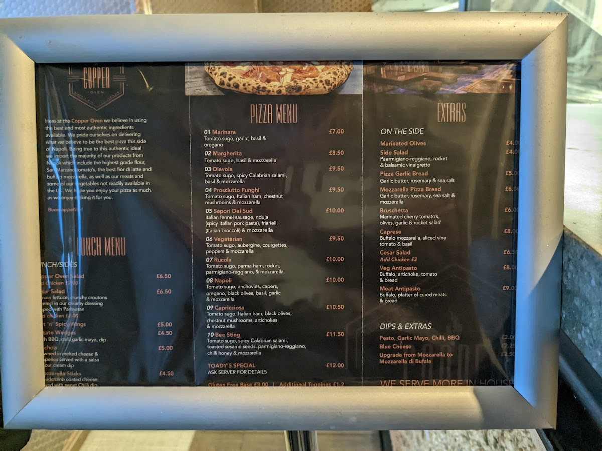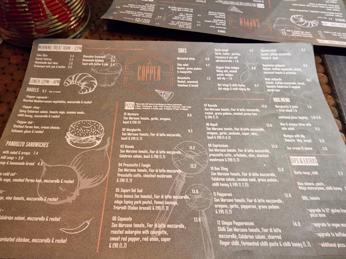 The menu at Copper Oven offers a delightful mix of traditional and inventive Italian dishes, perfect for a relaxed yet flavorful dining experience. The standout options include the bold and spicy Diavola, a pizza that combines a fiery kick with savory toppings. For those seeking a classic, the Margherita Pizza delivers simplicity and freshness with its perfect balance of tomato, mozzarella, and basil. The Pizza Bread Et Pizza is a unique twist, offering a combination of pizza dough topped with ingredients that are both satisfying and indulgent. Another must-try is the Sapori Del Sud Pizza, which brings the flavors of southern Italy to the plate with rich, rustic toppings. For a light yet satisfying meal, the Bagel provides a delicious option, offering a perfect balance of taste and texture. Copper Oven’s menu masterfully caters to both traditional pizza lovers and those in the mood for something a little different, all set in the warm, inviting atmosphere of Arbroath.